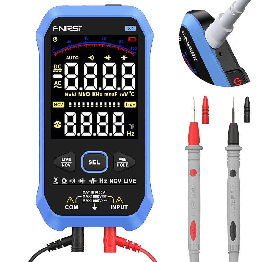 The FR S1 Smart DMM is an ultra-compact, intelligent digital multimeter designed for automatic testing of AC/DC voltage, resistance, and continuity. With features like NCV (Non-Contact Voltage) detection, live wire testing, and LED visual indicators, it provides enhanced safety and convenience for home, DIY, and light industrial use.